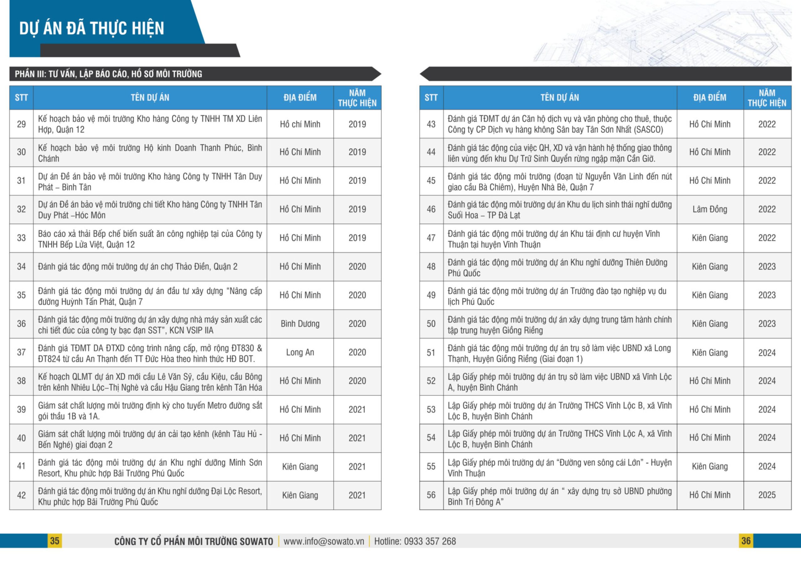CÁC HỒ SƠ MÔI TRƯỜNG ĐÃ THỰC HIỆN
